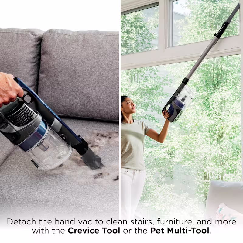 Cordless stick vacuum engineered for homes with pets. Powerful suction and tangle‑free brushroll capture hair effectively. Converts to a handheld for furniture, stairs, and car interiors.