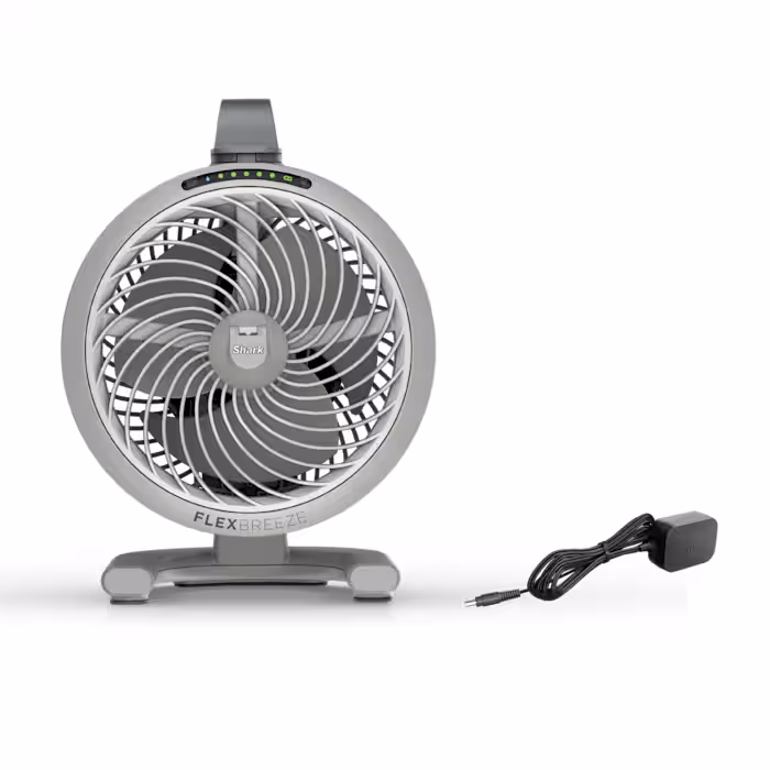 Cordless portable fan with HydroGo™ power for indoor/outdoor cooling. Flexible stand and multiple speed settings for targeted airflow. Lightweight design makes it easy to move from room to patio.